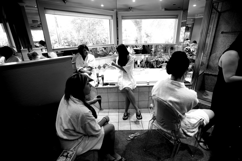 While the women sipped champagne in their monogrammed robes, the men enjoyed a few cigars to mark the occasion. Despite the record heat and drought, Danny and his team kept Hummingbird House green and beautiful for their summer brides. After the ceremony and formal pictures we headed to the reception for a great party with a live band! A few more pictures with the happy couple in the trees wrapped with lights – then we sent them off! Congrats to Heather and Trent!